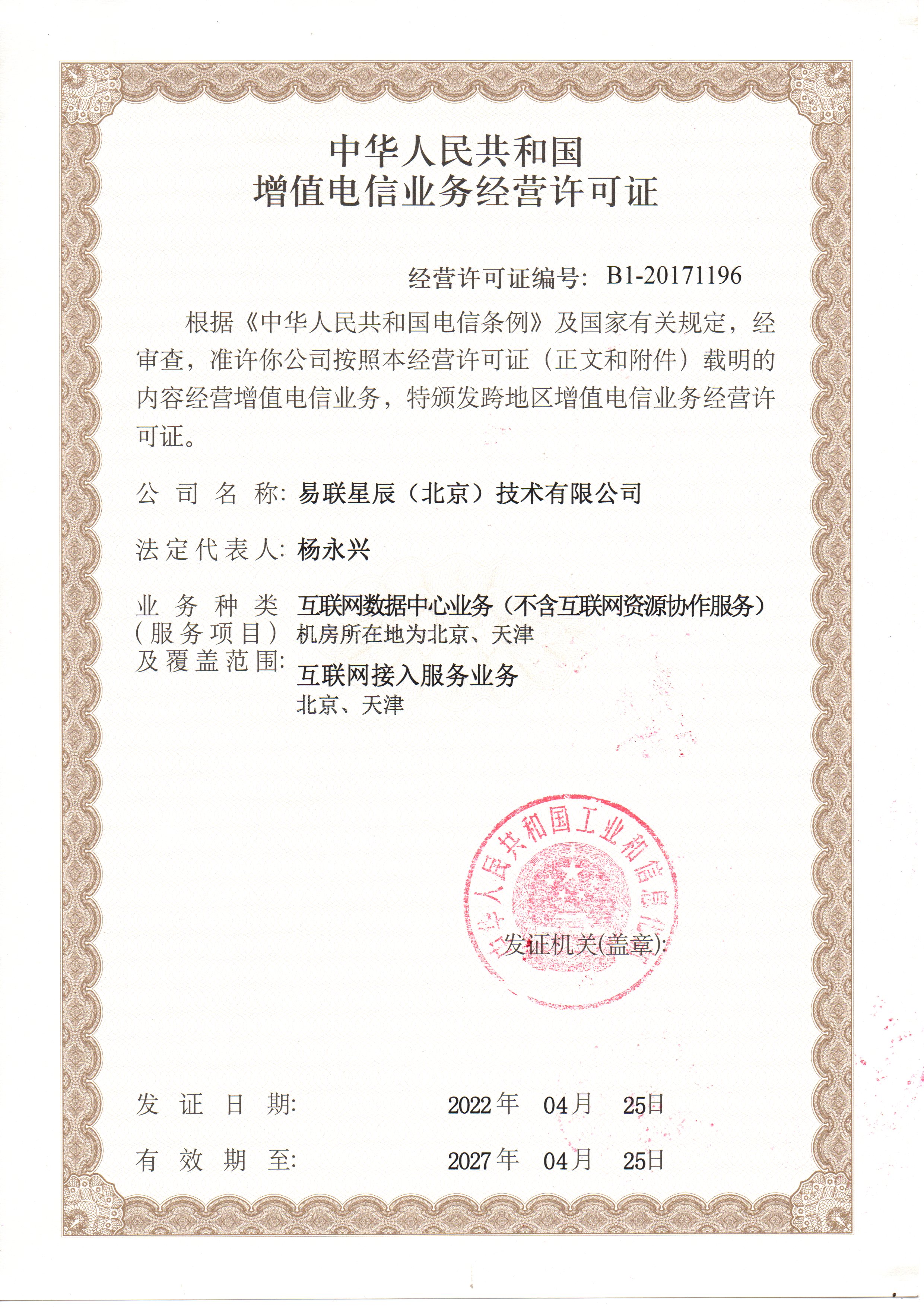 中华人民共和国增值电信业务经营许可证